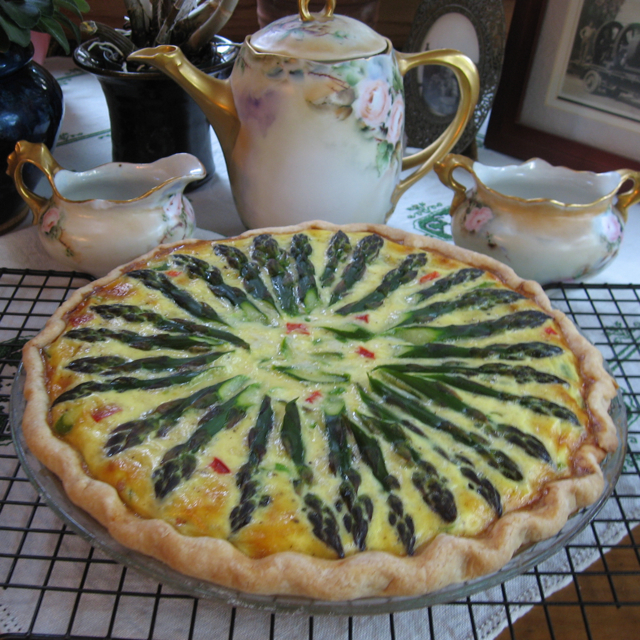 There are several factors that can make a quiche watery: too much water in the vegetables, too high of cooking temperature, too much milk for the number of eggs and bad karma. I think I needed to dry the asparagus out more* prior to assembling the quiche and used less asparagus in the mixture. I’ll also up the eggs to milk ratio and throw in a tablespoon of flour next time through.