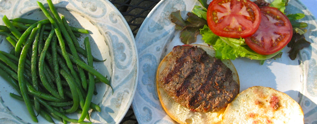 Tonight’s dinner was a 4th of July weekend classic – hamburgers on the grill with green beans and bread-and-butter pickles from the market.