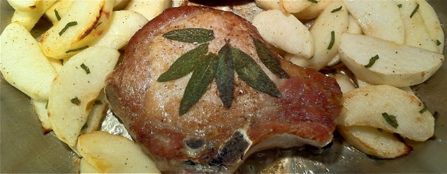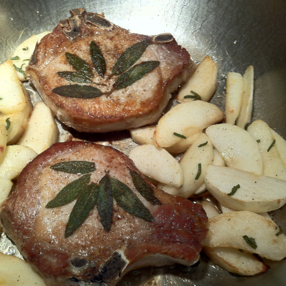 Apples and sage go together wonderfully. The sweet and tart of the apple mixes with the earthy sage to make a great pairing for pork. This is a quick meal to fix and dead simple to make.