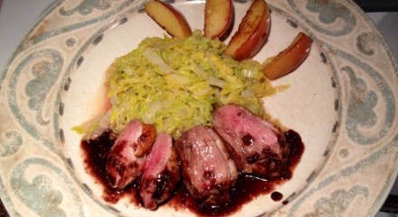 Duck in a pomegranate sauce spiced with fennel and coriander makes a quick and lovely lunch or main course for two. Paired with braised napa cabbage and apples cooked with the duck makes this a simple two pan meal. It takes about 15 minutes to make start to finish. You could extend it by … Continue reading →